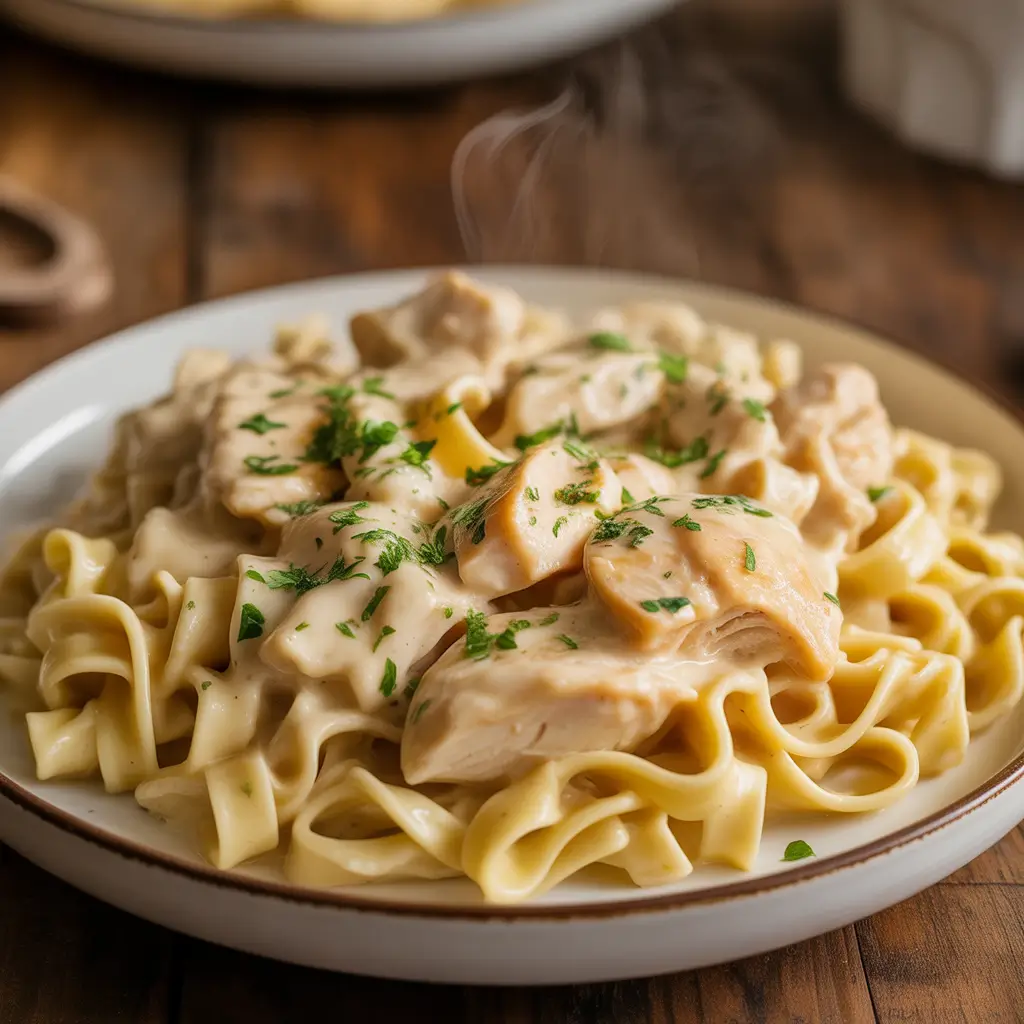 For a vegetable-focused twist, replace 200 g of chicken with 300 g of broccoli florets and 1 can of chickpeas, drained and rinsed. The chickpeas add plant protein while broccoli brings texture and color. If you prefer a vegetarian Alfredo flavor, use vegetable broth instead of chicken broth and a touch of nutmeg to deepen the sauce’s richness.